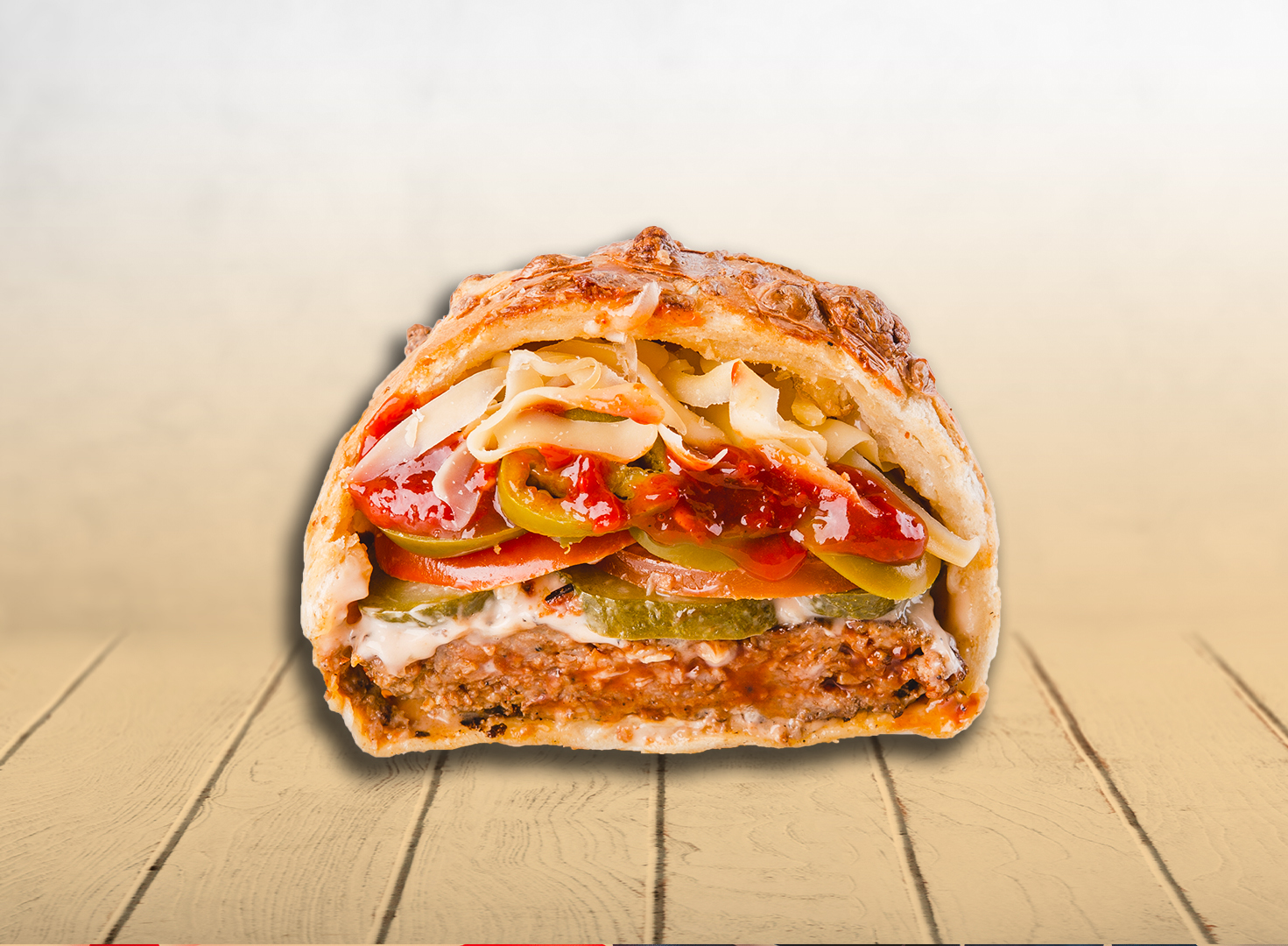 MONSTER JALAPENO&CHILI PIZZABURGER(marhaburger, mozzarella, paradicsom, csemege uborka, jalapeno, smoke&chili szósz)